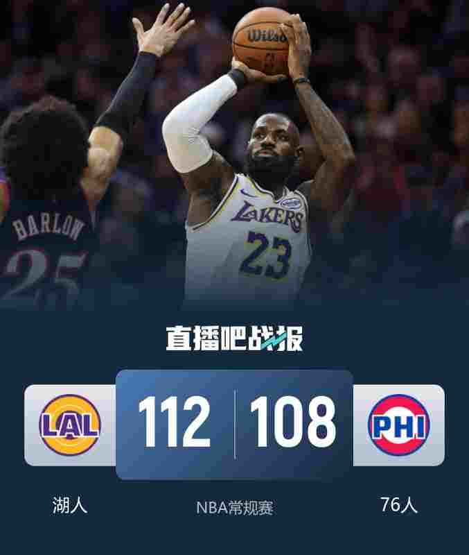 首節開打后馬克西率先發難單節獨得10分,東契奇buff拉滿連投帶傳,詹姆斯反擊暴扣技驚四座,艾頓和八村塁內外結合,湖人多點開花填補兩位數大坑,首節結束兩隊戰成30平,次節回來,恩比德手感不佳只能造殺傷取分,但湖人進攻同樣滯澀,里夫斯聯手東契奇苦苦支撐,半場戰罷,76人確立7分優勢。短暫休整后湖人找回進攻感覺,一波13-4后來居上,東契奇全能發揮三節砍下準三雙,三節結束后湖人反超3分,末節決戰,詹姆斯無人可擋連拿10分,馬克西三分保留懸念,東契奇兩罰穩穩命中,詹姆斯致命搶斷殺死比賽,最終湖人112-108力克對手,反超掘金重返西部第2。